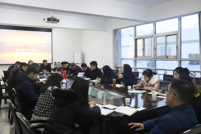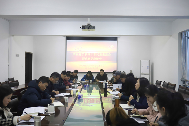 为开好2017年度学院领导班子民主生活会,推进学院各项事业健康可持续发展,3月19日下午,学院党委书记彭德忠、院长卜诗桢分别在知言楼三楼会议室和知远楼六楼会议室主持召开征求意见座谈会,重点就学院领导班子及班子成员思想、组织、作风、纪律等方面的情况,向广大干部师生广泛征求意见建议。在校院领导、部分中层干部和教职工代表参加座谈会。