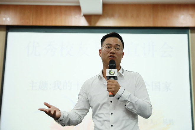 下午,易胜以“我的十年—128个国家”为题为学弟学妹作创新创业专题辅导。他首先介绍旗下公司的发展情况,并结合自己的创业经历,讲述了毕业后先后前往128个国家拓展公司业务的奋斗历程。讲座中,易胜深情回忆了在母校学习生活的点滴情景,强调在校期间养成的“吃苦耐劳、艰苦奋斗”精神对自己今天取得的成绩起着决定性作用,希望学弟学妹们在校期间养成良好的学习生活习惯,认真钻研专业知识,努力提升综合素质,践行“知行合一”的学风,为未来更优秀的自己打好坚实的基础。易胜还就如何选择目标、掌握外语技巧、提升口才与人际交往能力等与学弟学妹进行了互动交流。