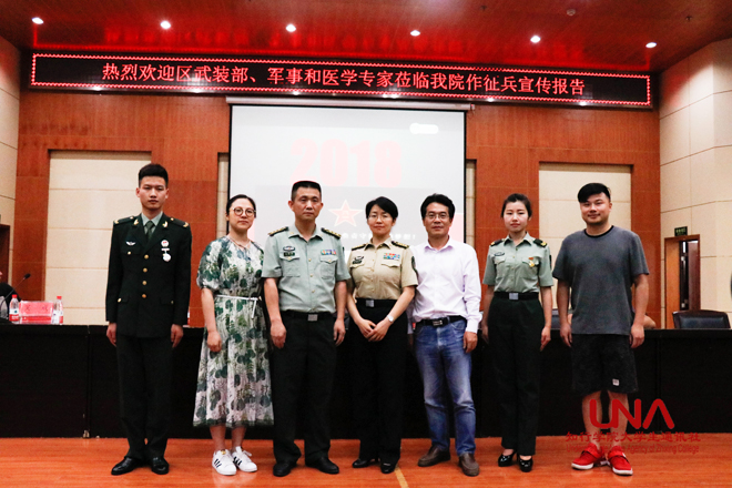 5月23日晚,江岸区人民武装部联合我院在知远楼弘德厅开展“踊跃参军 卫我中华”国防教育主题活动。江岸区人民武装部部长向海林、火箭军指挥学院副教授万惠兰、武汉市第八医院医师王倩应邀为有志入伍的同学们作专题辅导报告和政策宣讲。学院副院长黄智凌出席活动。相关职能部门负责人和各系学生代表参加活动。