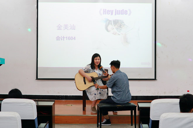 大赛分为英语专业组和大学英语本科组,包括英语演讲比赛和英语歌曲大赛。经过前期选拔,全院共22名选手入围院级决赛。演讲比赛中,选手们围绕大赛主题,根据视频影像资料,以“石头”为喻展开演讲,他们或从石头的外形展开联想,回顾个人的成长经历;或引入与石头有关的中国传统文化故事,讲述人生哲理;或以石头类比生活中的困境,分享个人的奋斗拼搏历程。在随后的即兴演讲和外教问答环节中,各位选手的表现也是精彩纷呈,高潮迭起,不断引来评委和观众的阵阵掌声。歌曲比赛中,选手们演唱的《There’s Nothing Holding Me Back》《Say Something》《Hey Jude》等歌曲以动听的旋律,优美的发音给在场的观众带来了一场听觉盛宴,将现场的气氛一次又一次推向高潮。经过两个多小时的激烈角逐,外国语系1704班朱芳、经管系工程1701班黄家港分别荣获英语专业组和大学英语组演讲比赛一等奖,计算机系计应1703兰迪同学荣获大学英语组歌曲比赛一等奖。