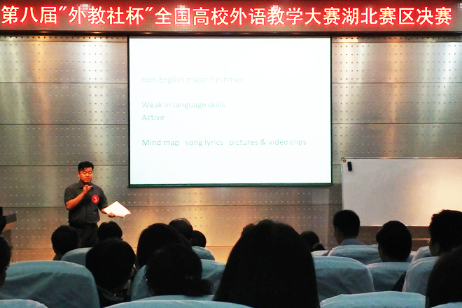 本次比赛由湖北省教育厅、湖北省高等教育学会大学外语教学专业委员会和上海外语教育出版社联合主办,经过全省各高校的层层选拔,来自25所高校的34名大学英语教师进入复赛。复赛中,分赛区组委会组织专家评委对参赛选手报送的授课和微课录像进行了评审,贺欢老师顺利入围决赛。决赛的赛制要求教师必须具备先进的教学理念、扎实的语言基本功、多样化的教学方法以及卓越的教师综合素养。贺欢老师在决赛中以清晰的逻辑,流利的口语,系统化的教学理念,将自己对教学材料的理解,教学对象的需求,教学目标的设定及课堂活动的设计有条不紊的呈现出来,赢得了专家评委、现场观众和同行教师们的高度好评,充分展示了我院青年教师的风采。