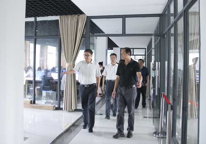 调研中,蒋涛副校长在学院领导的陪同下,首先参观了新建成投入使用的经管会计类跨专业综合实训中心,听取了经管系负责人对实训中心的简要介绍,对学院围绕应用转型发展,不断加强实验实训设施建设的有力举措给予了高度赞赏。随后,蒋涛副校长还实地察看了新投入使用的学生公寓,参观了改造一新的“天兴园”食堂,看望并慰问正在开展军训的2017级新生,对学院新学期焕然一新的校园环境和井然有序的教育教学工作给予了充分肯定。
