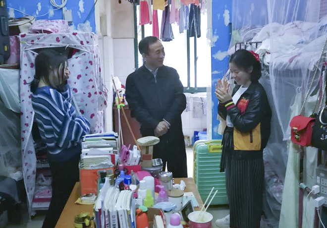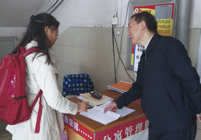 调研中,尚钢书记听取了学院新学期工作汇报,对学院新学期焕然一新的校园环境和井然有序的教育教学工作给予了充分肯定。尚钢书记还在学院领导的陪同下,深入到6号公寓和11号公寓部分寝室及两个学生食堂,亲切看望慰问学生,询问他们的学习和生活情况,嘱咐同学们注意身体,勤奋学习。