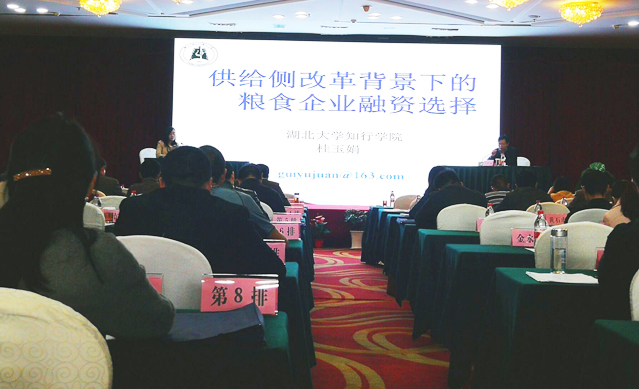 报告中,桂玉娟副教授以《供给侧改革背景下的粮食企业融资选择》为题,为研讨班学员介绍了当前粮食行业的融资政策环境及融资现状,并结合国家实施供给侧结构性改革战略背景,对债务融资和股权融资进行了比较分析,重点对湖北粮食企业融资现状进行了分析,提出了改善粮食企业融资的合理化建议。讲解中,桂老师旁征博引、深入浅出,将粮食行业融资数据、案例及相关产业政策进行有机结合,授课风格严谨又不失活泼,受到与会专家和学员的一致好评。