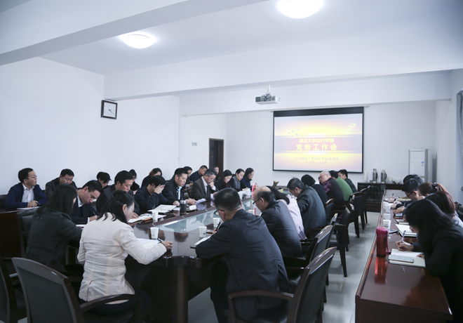 11月8日下午,学院在知言楼三楼会议室召开党务工作会议,学习宣传贯彻党的十九大精神,部署推进下一阶段党建与思想政治工作。学院党委书记、院长彭德忠出席会议并讲话。在校学院党委委员、各党总支书记、副书记、直属党支部书记和相关职能部门负责人参加会议。党委副书记高志宏主持会议。
