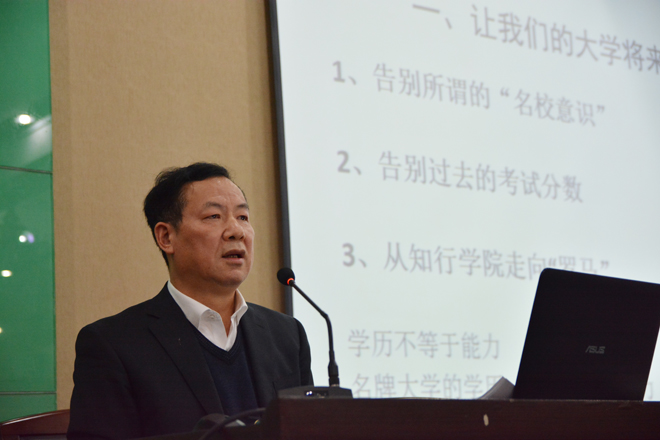 报告中,任蒙教授围绕“让我们的大学将来以你们为荣”、“让大学精神把我们培养成民族栋梁”、“以大学精神改造我们的学习方式”和“让大学精神把我们塑造成有教养的世纪新人”四个方面展开,他结合自身经历,引经据典,深入浅出地分析了当下大学发展形态、大学生的学习方式及个人素质的全面提升等问题。