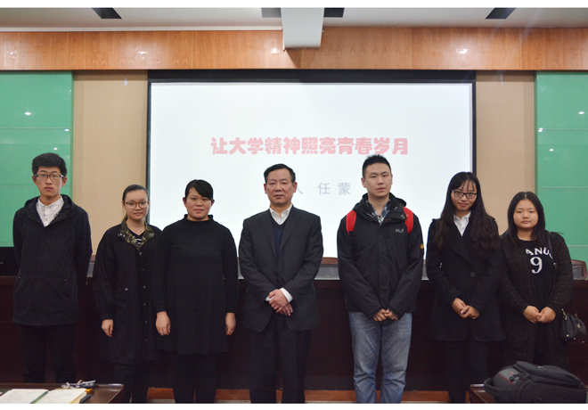 “大学精神”是大学自身存在和发展中形成的具有独特气质的精神形式的文明成果,它是科学精神的时代标志和具体凝聚,是整个人类社会文明的高级形式,集中体现在创造精神、批判精神、社会关怀精神三个方面。任蒙教授理论结合实际,列举了同学们日常的诸多行为表现,全面系统地阐释了何为“大学精神”。任蒙教授表示,大学生应该面向今后走向社会的人生培养自己的参与意识,努力争做有社会担当的知识分子。我们不否认为自己而学,但我们将来的人生目标不能仅仅停留在“养家糊口”的标准上。大家要做国家栋梁,做一个对民族、对社会有担当的知识分子。要努力学习和践行社会主义核心价值观,把自己的青春和人生,与国家的前途和民族的命运紧密地联系起来,要在学习中关心和思考民族的未来。