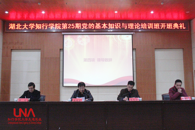 本网讯11月9日下午,学院党校第25期入党积极分子培训班开班典礼在知远楼弘德厅举行。学院党委书记吴志文、副院长陈刚、党委委员刘张虎出席开班典礼,机关职能部门负责人、各党总支、直属党支部书记、副书记及400多名入党积极分子参加开班典礼。开班典礼由党委副书记高志宏主持。