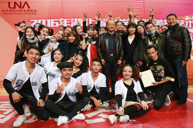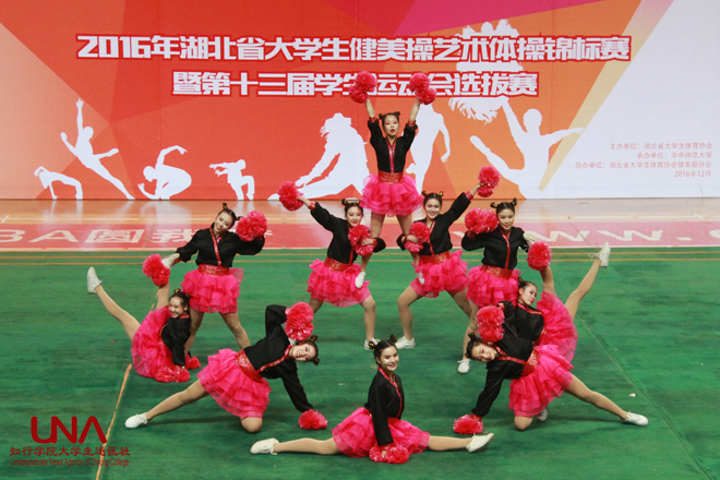 本次比赛由湖北省大学生体育协会主办,华中师范大学承办,分普通高校组、体育院校组和高水平组三个组别,包括竞技健美操自选、大体协规定、大众规定套路时尚健身操、街舞自选等九个大类,共有229支比赛队伍参加比赛,参赛人数达一千余人。比赛中,知行学子们举腿、踢腿、转体等动作难度高,熟练灵活,队形整齐多变,充分展示了她们青春的激扬与奔放,体现了教练和队员们近几个月以来艰苦训练的水平,赢得了现场观众的阵阵掌声,得到了裁判员们的高度肯定和认可,最终获得自由舞蹈项目第一名、自选轻器械项目第一名、综合风格齐舞自选第二名和团体一等奖的好成绩。