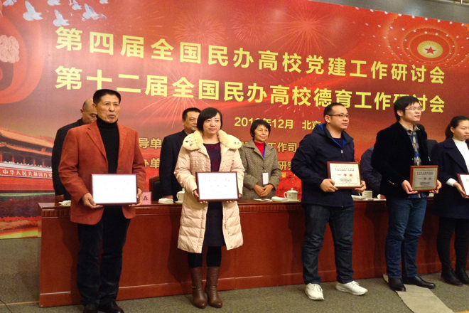 闭幕式上,相关部门领导为本次受到表彰的获奖成果颁发了奖牌和荣誉证书,我院一项党建研究成果被评为2016年度全国民办高校党建与思想政治工作优秀成果一等奖(全国共评出10个一等奖),党群工作部副部长张丹同志代表学院上台领奖。(通讯员 刘琴)