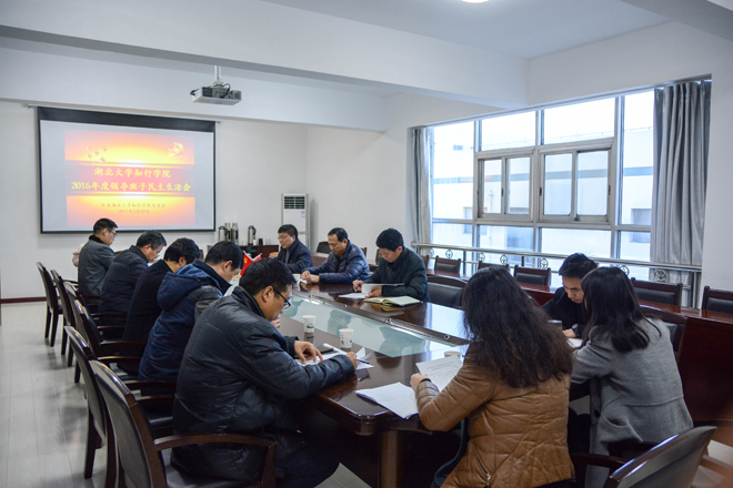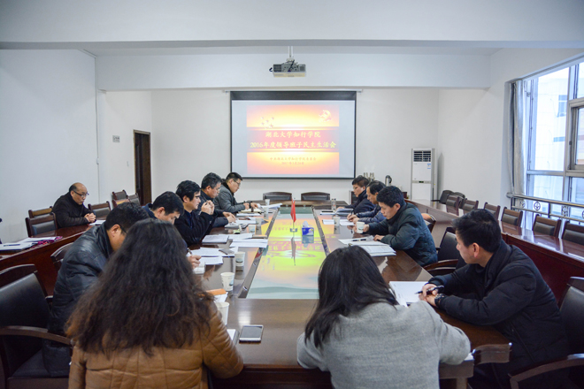 根据《中共湖北大学委员会关于认真开好2016年度党员领导干部民主生活会的通知》精神,3月24日,学院在知言楼三楼会议室召开2016年度院领导班子民主生活会。学院领导班子以深入学习贯彻党的十八届六中全会精神为主题,围绕“两学一做”学习教育要求,重点对照《关于新形势下党内政治生活的若干准则》和《中国共产党党内监督条例》,结合思想和工作实际,进行党性分析,开展批评和自我批评。湖北大学副校长蒋涛教授出席会议。学院党委书记吴志文主持会议,院长彭德忠和班子其他成员参加会议,相关职能部门负责人列席会议。