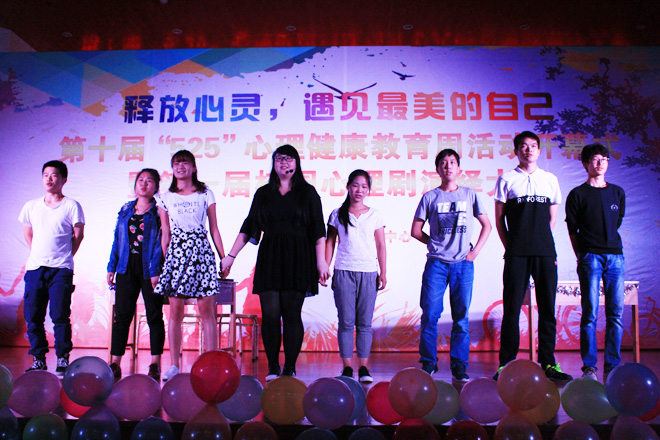 大学生心理健康协会学生代表陈敏宣读“5.25”心理健康教育活动周倡议书。大一学生代表围绕“释放心灵,遇见最美的自己”活动主题表演了《明天会更好》和《爱》的大型手语舞,表演情感丰富,引发现场观众强烈共鸣。接着,第一届心理剧演绎大赛开始,六支参赛代表队经过初赛比拼成功进入决赛。决赛队伍及表演节目包括人文与社会科学系的《爱在无声中》、经济与管理系的《谁说我不在乎》、艺术与设计系的《转身拥抱阳光》、大学生心理健康协会的《心灵的阳光》、会计学与财务管理系的《313寝室的那些事》和食品与生物工程系的《我是谁》。参赛团队将发生在大学生学习生活中的琐事和大学生常见的心理问题以情景剧的形式搬上舞台,令现场观众深受启发。经过评委打分评定,会计系参赛代表队荣获此次比赛一等奖、人文系、经管系参赛代表队分获二、三等奖。