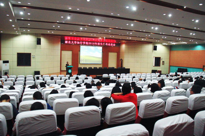 本网讯6月7日下午,学院在知远楼弘徳厅召开2016年招生宣传动员大会,传达学习2016年上级有关招生政策,分析研究学院2016年招生工作面临的新形势和新任务,组织动员全院干部教师进一步理解政策、掌握政策、明确任务,以新的精神状态和更加务实的作风,将学院2016年各项招生工作做细做实,确保2016年学院招生工作取得圆满成功。学院领导、中层干部及全院教职工参加会议。学院党委书记吴志文主持会议。
