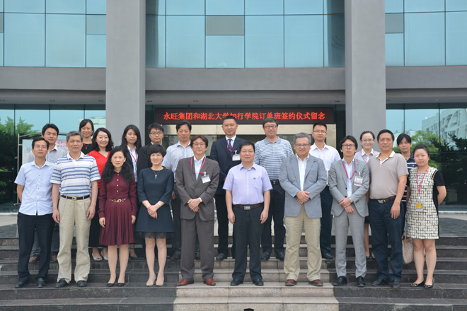 学院党委书记吴志文首先代表学院向出席签约仪式和揭牌仪式的各位嘉宾表示热烈的欢迎和衷心的感谢,向来访客人简要介绍了学院的历史沿革、专业设置、办学特色、人才培养、校园建设等基本情况。吴志文指出,校企共建的实习基地和人力资源培养基地的揭牌和订单班的设置是学院深化教育教学改革、创新人才培育模式、提升学生就业质量的有效载体,是当前深受企业和学校欢迎的校企合作方式之一。“校企合作,订单培养,互惠互利,互动发展”是实现学校、企业、学生“三赢”的有效途径。吴志文结合校企合作订单班的培养工作提出三点建议:一是希望学院和企业精心组织和优化订单班的生源,面向学生开展广泛的宣传;二是学院和企业要根据人才培养目标,遵照教育教学规律,共同制定人才培养方案;三是在订单班人才培养的实施过程中,学院和企业要共同努力,积极开发适应订单班教育的课程和教材。吴志文最后希望学院和永旺集团能以此次合作为契机,不断拓宽合作领域,加大合作力度,在校企合作的战略性、全面性、深入性等方面有更大突破。