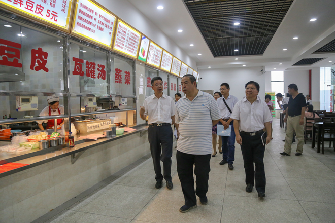 汇报会后,张文斌一行在学院领导的陪同下实地察看了教学楼、学生宿舍、学生食堂及校园周边等场所。(摄影:学通社记者李培仪)