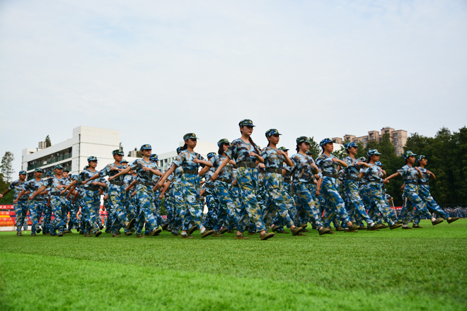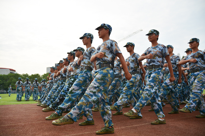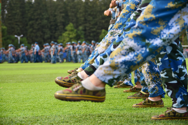 本网讯9月12日起,我院2016级2900多名新生开始了为期两周的军训。军训期间,同学们不怕苦、不怕累,积极参加训练,站军姿、走正步、唱军歌,了解国防知识,磨练意志品质,培养吃苦耐劳作风和团队合作精神,充分展现了当代大学生的青春风采。(摄影:学通社影音部)