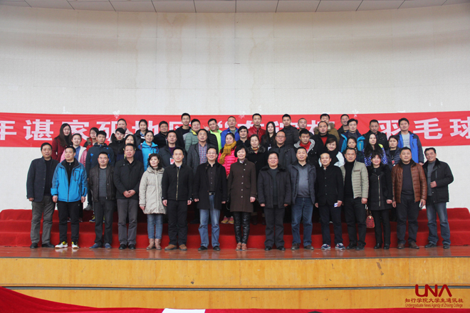 本网讯为进一步丰富社区文体生活,促进和谐社区建设,12月10日,由江岸区谌家矶街主办,新建村和知行学院承办的2015年武汉市江岸区谌家矶地区“友谊杯”羽毛球赛在我院体育馆隆重举行。谌家矶街党工委书记张利、街办事处主任吴君、副主任余文利、学院党委书记吴志文出席开幕式,来自辖区机关、教育、社区、行政村、企业等11家单位的100余名职工和居民参加比赛。学院党委副书记高志宏主持开幕式。