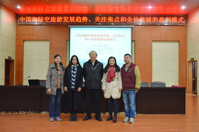 讲座中,马勇教授围绕“中国海陆空旅游发展趋势”主题,从中国海陆空六个发展趋势、四个关注焦点、六大盈利模式三个方面展开。对中国海陆空旅游全球化趋势、创新化趋势、个性化趋势、品牌化趋势、融合化趋势、科技化趋势等进行了深刻分析和阐释。重点从品牌打造、功能延伸、价值提升及集群效应等方面讲解了中国海陆空旅游关注的焦点。讲座中,马勇教授还从思维跨界盈利模式、要素优化盈利模式、产品创新盈利模式、价值延伸盈利模式、产业集群盈利模式、资本投入盈利模式等方面对中国海陆空旅游盈利模式及前景进行了分析和讲解。讲座最后,马勇教授应邀与现场师生进行互动,对广大师生提出的问题一一进行了解答,整场讲座精彩纷呈,深受学生欢迎。