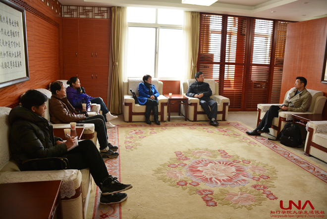 讲座前,院长彭徳忠热情接待了徐燕青、赵国成一行。(文/学通社记者 陈晨 蓝星洁 肖静蕾 刘绕娆 图/马超)