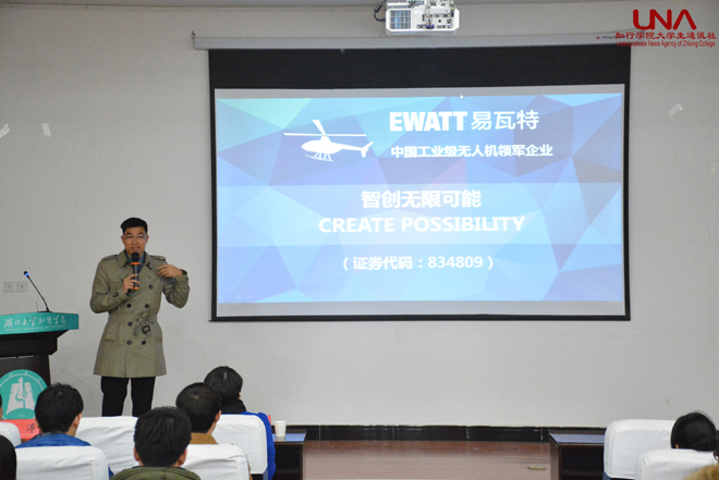 学通社讯12月22日下午,由武汉市江岸区科学技术协会主办,我院承办的“创业先锋进校园”易瓦特创业分享会在知远楼弘艺厅举行。湖北易瓦特科技有限公司董事长赵国成应邀为我院200余名有创业意愿的学生作创业报告分享会。武汉市江岸区科学技术协会党组书记、主席徐燕青、秘书长彭涛、办公室主任李君君、学院党委委员刘张虎出席报告会。