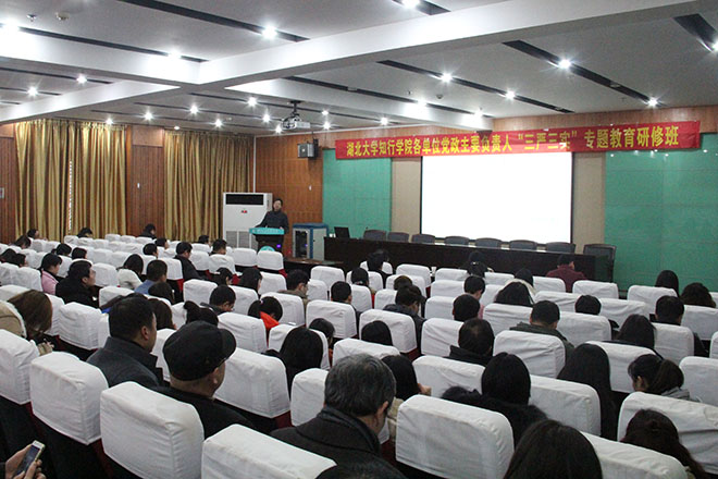 本网讯为进一步深化落实 “三严三实”专题教育学习实践活动,按照研修班统一安排,12月23日下午,学院各单位党政主要负责人“三严三实”专题教育研修班第六场辅导报告在弘智厅举行。学院院长彭徳忠以“新常态下如何加强党的纪律建设”为主题,为全院党员干部作“三严三实”专题教育辅导报告。学院党政班子成员、全体中层干部和教职工党员代表参加报告会。副院长王文凯主持报告会。