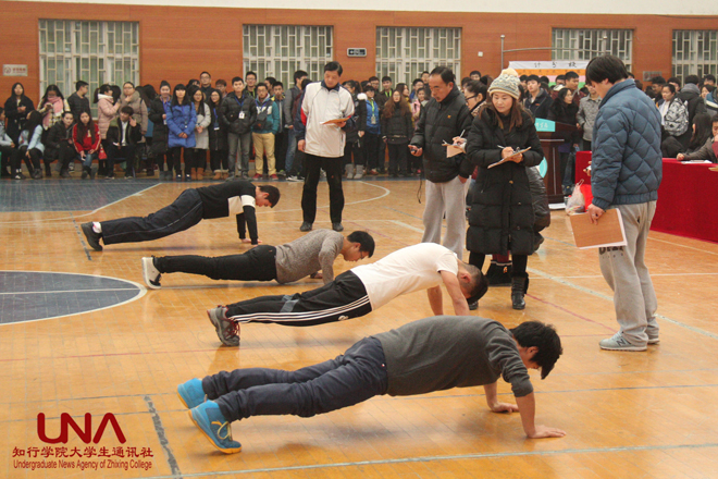 闭幕式上,院艺术团表演了前不久在武汉市第十三届高校文化节上获得的舞蹈类银奖节目《风雨同舟》,表演气势磅礴、震撼人心,赢得现场观众阵阵掌声。随后,本届体育文化节俯卧撑比赛、仰卧起坐比赛及跳绳比赛决赛依次展开。经过激烈角逐,机电系郭辉、田剑、会计系王行分别获得俯卧撑比赛前三名;会计系邱茜、外语系宋芝畅、经管系林倩分别获得仰卧起坐比赛前三名;外语系梁铭章、张晟铭、经管系谭恒分别获得男子单项跳绳前三名;经管系林倩、会计系刘芳芳、生工系孟娇分别获得女子单项跳绳前三名;经管系获得团体跳绳第一名、人文系获得团体跳绳第二名、会计系获得团体跳绳第三名。