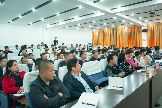 本网讯4月11日,2016年湖北省粮油保管员培训班开班典礼在我院知远楼弘文厅举行。学院院长彭德忠出席开班典礼。教务处、继续教育学院、食品与生物工程系负责人及来自全省100多名粮油保管干部参加开班典礼。院长助理陈惠主持开班仪式。