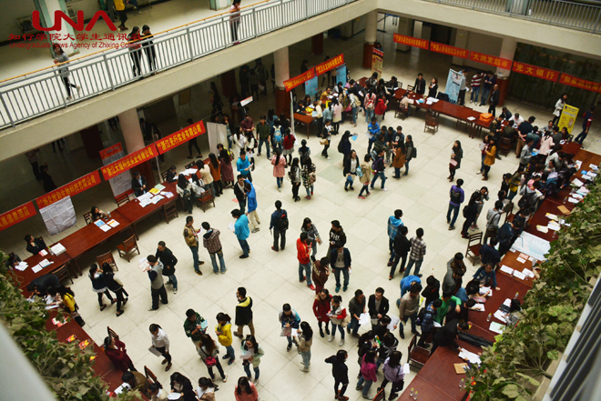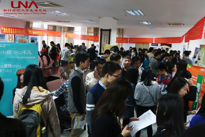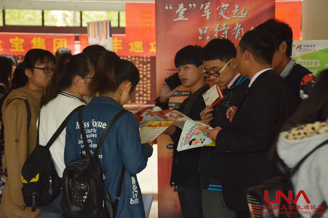 本网讯 为切实做好毕业生就业工作,大力构建毕业生与用人单位的交流平台,积极为用人单位输送应用型人才,10月28号下午,学院在图书馆一楼大厅举行2016届毕业生秋季双选会,110余家用人单位来我院选聘人才。学院党委书记吴志文、院长彭徳忠、党委委员、党政办主任刘张虎及系部负责人前往招聘现场,了解企业需求和学生求职情况,与用人单位和毕业生亲切交流。