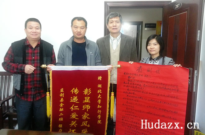 本网讯(通讯员 文刀 刘锐 刘星)“彰显师生风采 传递仁爱关怀”11月4日上午,我院经管系2013级强力同学的父亲不辞劳苦,从监利老家专程赶来学院,将一面锦旗和一封感谢信送到经管系,向全院师生的爱心募捐表达最诚挚的谢意。
