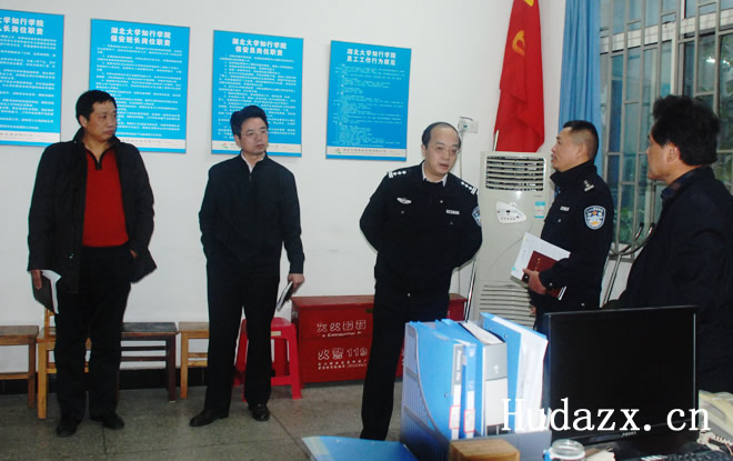 本网讯(通讯员 文刀)11月19日,武汉市公安局江岸分局副局长宋湘明率分局国保大队、治安大队、消防大队、交通大队及谌家矶街派出所等单位负责人,来院实地考察、推进“平安校园”创建工作。学院常务副院长彭德忠、院长助理王文凯及相关部门负责人参与推进座谈会。