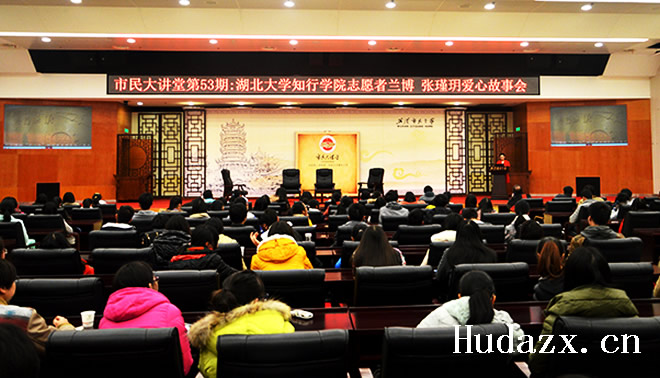 本网讯(通讯员 文刀 盛佳莹 候雨沐)12月27日下午,我院青年志愿者兰博、张瑾玥同学应武汉市民大讲堂邀请,主讲第53期大讲堂青年志愿者爱心奉献故事。我院师生代表与武汉三镇市民听众共同参与讲座活动。