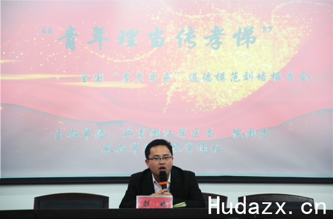 本网讯(通讯员董莹洁杨婷婷侯雨沐)“身体发肤,受之父母,不敢毁伤,孝之始也。”4月23日19时,全国“孝老孝亲”道德模范刘培报告会在我院学术报告厅106室举行。江岸区团委副书记李鹏、《长江日报》资深记者彭仲、院团委书记胡飞等领导出席报告会。学工处处长刘张虎主持会议,并为刘培颁发“成长导师聘书”。