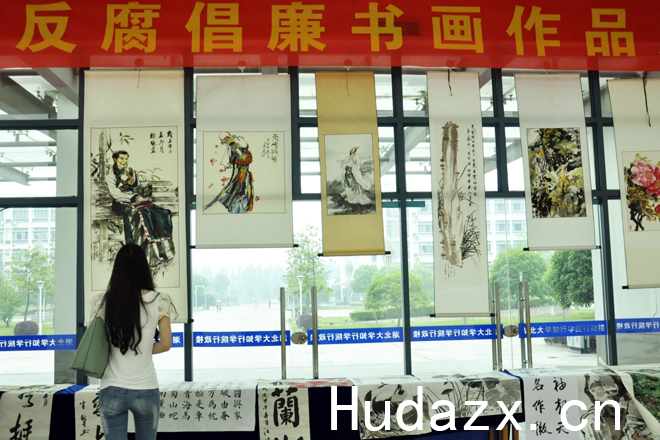 本网讯(记者文刀 通讯员董莹洁付瑜琰)5月21日,由我院院团委主办的反腐倡廉书画展在行政楼大厅展出,吸引了众多师生的目光。