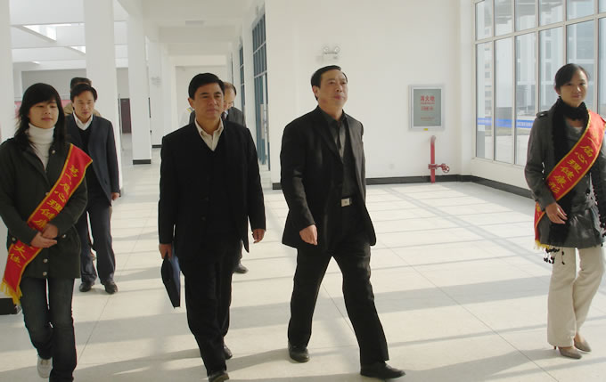 会后,杜海鹰处长一行在校领导的陪同下考察了学院新建图书馆、艺体中心、实验室和教学楼等二期校园建筑。