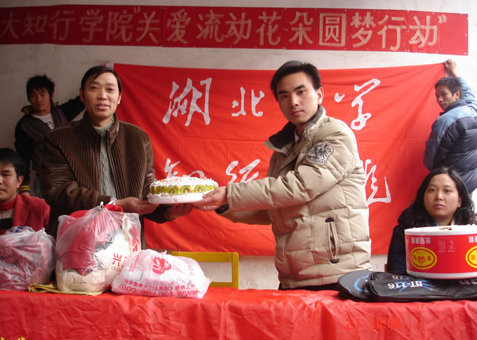 今年武汉圣诞节的天气特别冷,江汉区精英小学的孩子们心里却特别暖和。手织的围巾、帽子,自烤的面包、蛋糕,还有各种学习文具、玩具和糖果塞满了书包。从12月3日开始,我院学生就向精英小学的600多名学生征集新年愿望,并通过网络和海报形式向大学生发出号召“献一份爱心,圆一个愿望”。