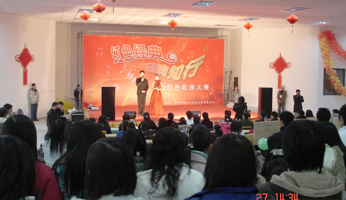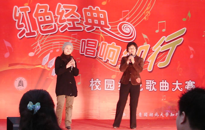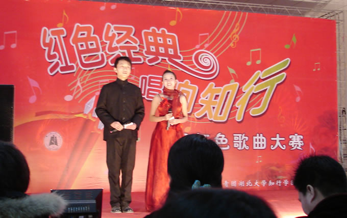 比赛紧张之余,学院人文系教师吴思君、院招生办公室主任陈惠、副院长刘刚有也先后登台助兴。副院长刘刚深情演唱的《共和国之恋》获得了观众们经久不息的掌声。
