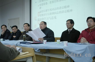 24日下午,学院召开全院教职工大会,传达2008年湖北省高等教育工作会议重要精神,按照湖北大学的统一部署安排新学期工作。副院长黄安全同志主持会议,全体院领导、各系部负责人和教职员工与会。