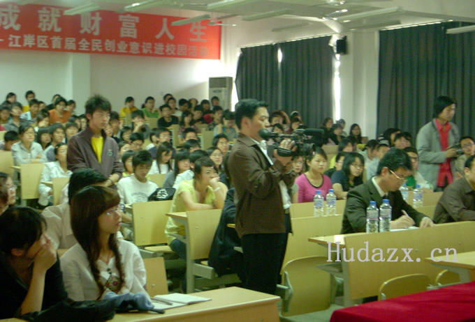 讲座由江岸区劳动局局长黄杰主持。市、区劳动局,街道办及学院领导分别发言。他们指出了创业的意义和重要性,号召大学生积极投身到创业的浪潮中来;积极培养创业意识,点燃创业激情。