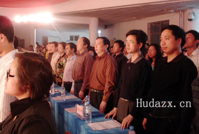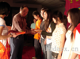 晚上7时许,庄严的国歌声中,大会正式开始,会议由学工处副处长、团委书记黄智凌主持。副院长彭德忠宣读了《关于表彰2007-2008年度“优秀团支部”“优秀团干”“优秀团员”的决定》,并向先进集体和个人颁发荣誉证书及奖状。