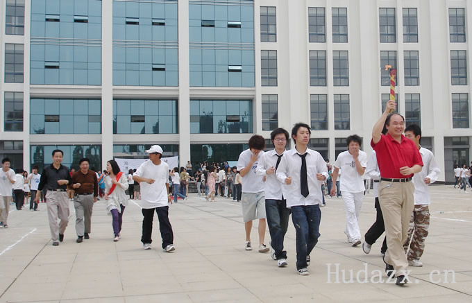 5月4日,奥运圣火抵达海南三亚,开始境内第一站的传递。5月5日,我院师生齐聚在学院二期工程中心广场,在这里隆重举办 “迎奥运 健康跑”大型模拟奥运圣火传递活动。我院党委书记(湖北大学党委常委)刘星海、副院长刘刚及相关系部负责人应邀出席活动。