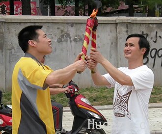 在奥运祝福歌曲《超越梦想》激昂奋进的旋律声中,刘书记点燃火炬,并将火炬交到刘刚副院长的手中。“迎奥运 健康跑”大型模拟奥运圣火传递活动正式开始。随后,火炬手们在助跑运动员的护送下,从新图书馆出发,沿着二期工程环形干道将火炬传递三周,最后抵达学院老校门,圆满结束奥运圣火传递活动。(院学通社李庆 陈诚 陈寒涵)