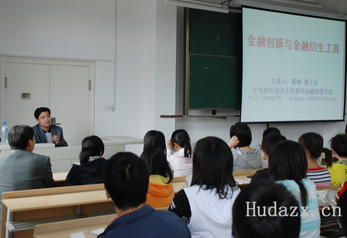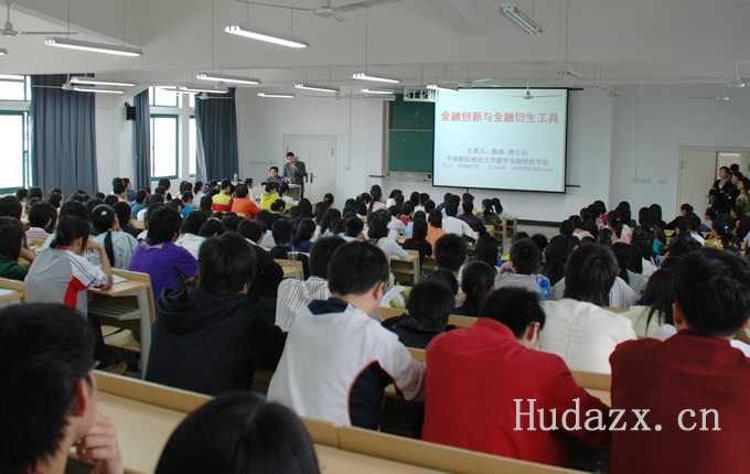 2008年5月9日下午,四号教学楼308室内座无虚席,由经济管理系主办、科研处协办的主题为“金融创新与金融衍生工具”的学术讲座在此成功举办。中南财经政法大学新华金融保险学院应用经济学博士后流动站的陈倬博士,为我院师生带来了金融方面的最新知识与理念。
