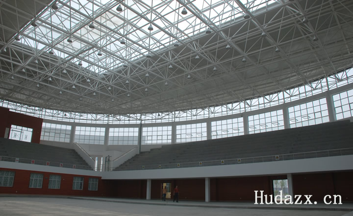 “小鸟巢”是校园二期工程中的建筑物之一,具有全天候、多功能、环保型等特点。椭圆形基础上的钢架全封闭结构,使晴天雨天白天黑夜都能使用;既可用于篮球、排球、羽毛球、体操等的训练和比赛,也可用于文艺演出、演讲竞赛和大型集会;由于有大面积的玻璃窗透射自然光和通风,能较好地节约能源。