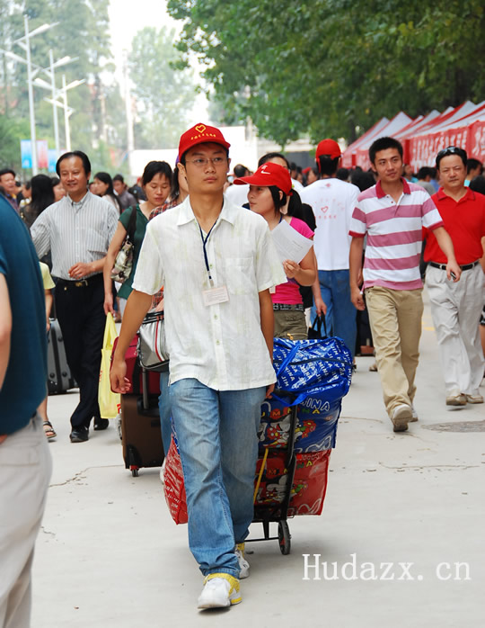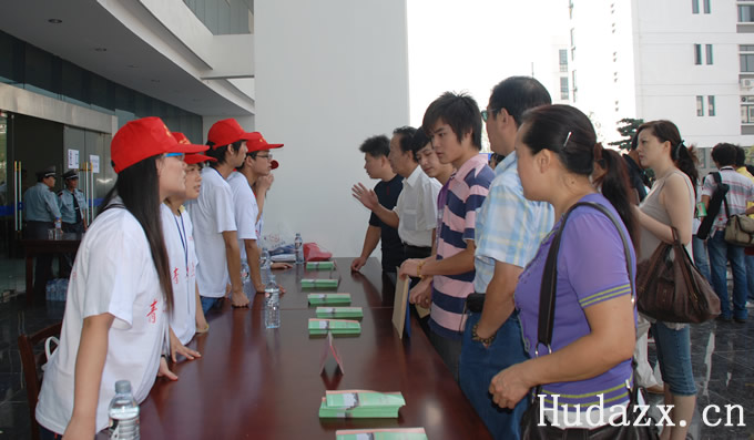 9月6日是我院2008级新生入校报到的日子,今天的校园显得格外热闹、喜庆,在校内,随处可见戴着红色帽子,穿着白色T恤,配挂工作牌的青年志愿者,统一的着装,同样的热情,他们优质的服务让广大新生和家长赞口不绝。