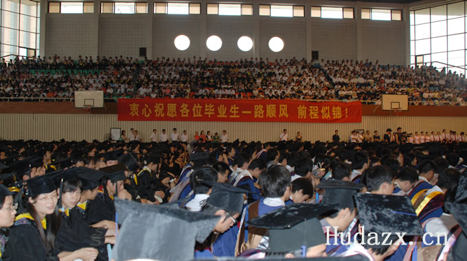 6月25日上午,学校2008届本科毕业生学位授予仪式在我校2号体育馆隆重举行。千余名身穿学位服的毕业生高唱国歌,参加了这一庄严的人生庆典。我院500名优秀毕业生代表也亲赴校本部参加仪式。授予仪式上,校领导分别为毕业学子颁发学士学位证书,同时勉励广大青年学子在新的人生道路上不畏艰险再攀高峰。(院学通社 李庆 陈诚)(以下为学位授予仪式现场盛况)