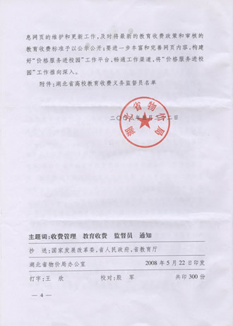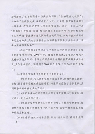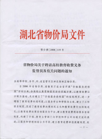 近日,记者从省物价局获悉,我院学生孙玥被省物价局聘为湖北省高校教育收费义务监督员。