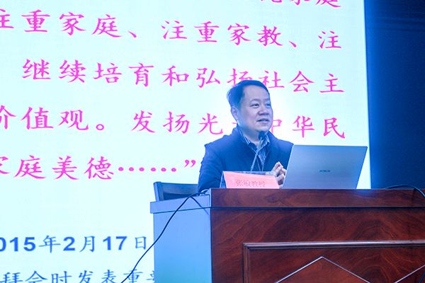 讲座中,张敏教授以传统家训文化的变革和发展为线索,从家庭、家族与家训,传统家训文化面面观,现代家庭与家训文化的嬗变和我们在新时代如何继承发展家训文化相关研究四个层面进行了讲解。讲座伊始,张教授以亲切的口吻将讲座引入轻松愉悦的氛围中,他分享了自己的家风,并以此为切口阐明了中国古代家庭、家族、家训的概念和发展历程,列举了家训文化的发轫、发展、成熟、鼎盛的各个阶段。深入浅出的剖析,让大家对家训文化与社会发展的关联与影响有了深刻体悟。张教授指出,家训文化在历史上有精髓和糟粕的两重性,一方面传统家训使社会成员自觉接受传统文化的教化,是家庭正常运转的工具,是社会和谐的调和剂。另一方面,传统家训文化是在封建专制的社会条件下的产物,不可避免的存在时代局限性,提示我们在家训文化的学习中去芜存菁、推陈出新。讲座最后,张教授对同学们继承弘扬家训文化提出三点期待:正人先正己,塑造贤配偶,念好育子经。