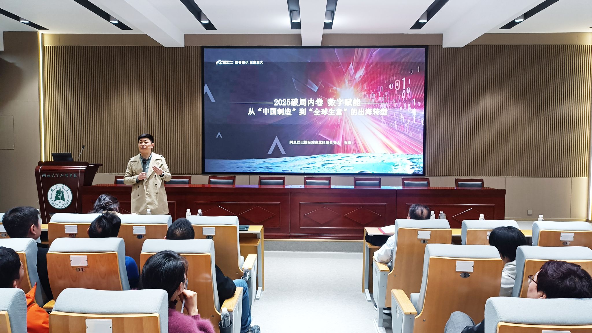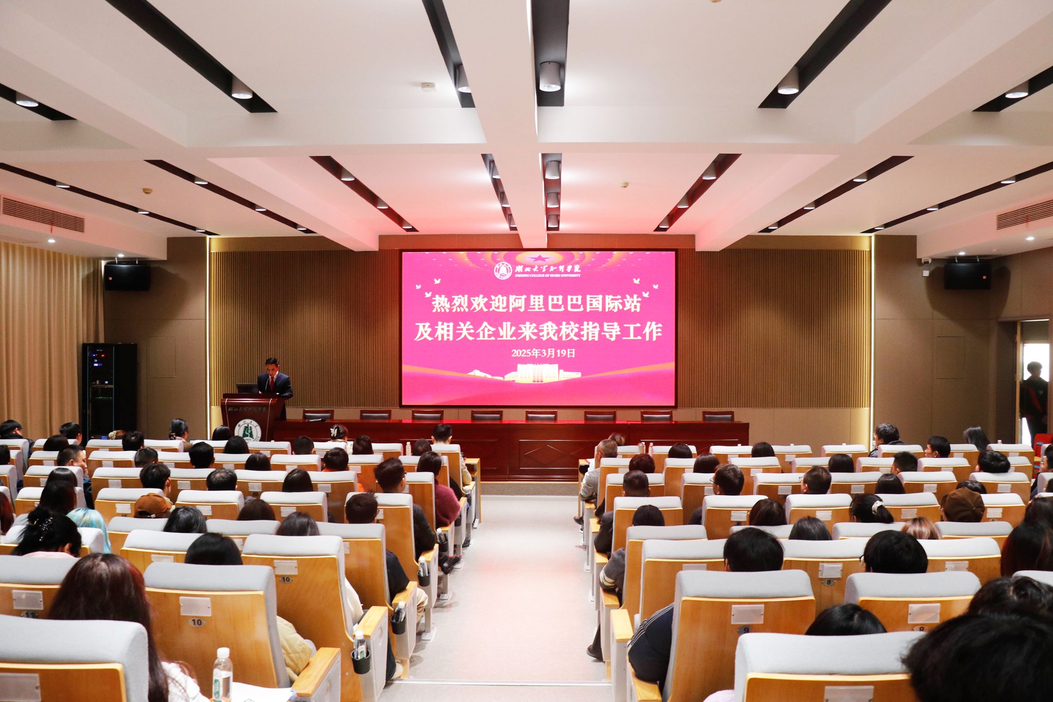 3月19日,阿里巴巴国际站武汉办事处联合多家跨境电商企业走进我校,举办了一场以“极简出海,货通全球”为主题的沙龙活动。活动旨在为学生搭建了解行业前沿、拓宽职业视野的平台,同时进一步深化校企合作联动。学校副院长刘张虎出席活动。相关企业负责人及外国语学院师生代表参加活动。
