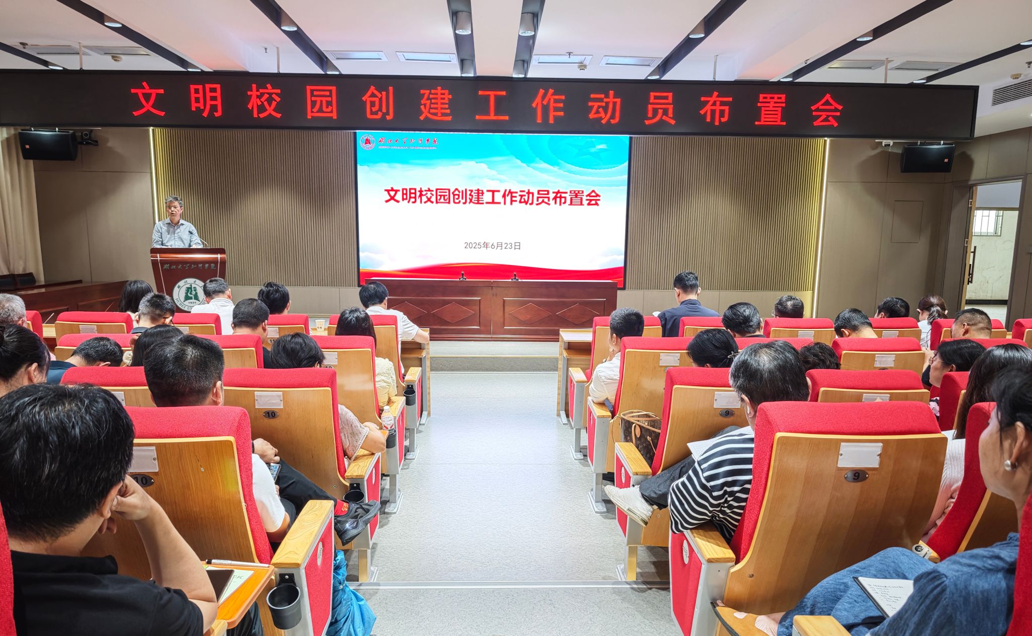 6月23日下午,学校在知远楼202弘智厅召开文明校园创建工作动员布置会。全体在校校领导、全校中层干部参加会议。党委副书记黄智凌主持会议。