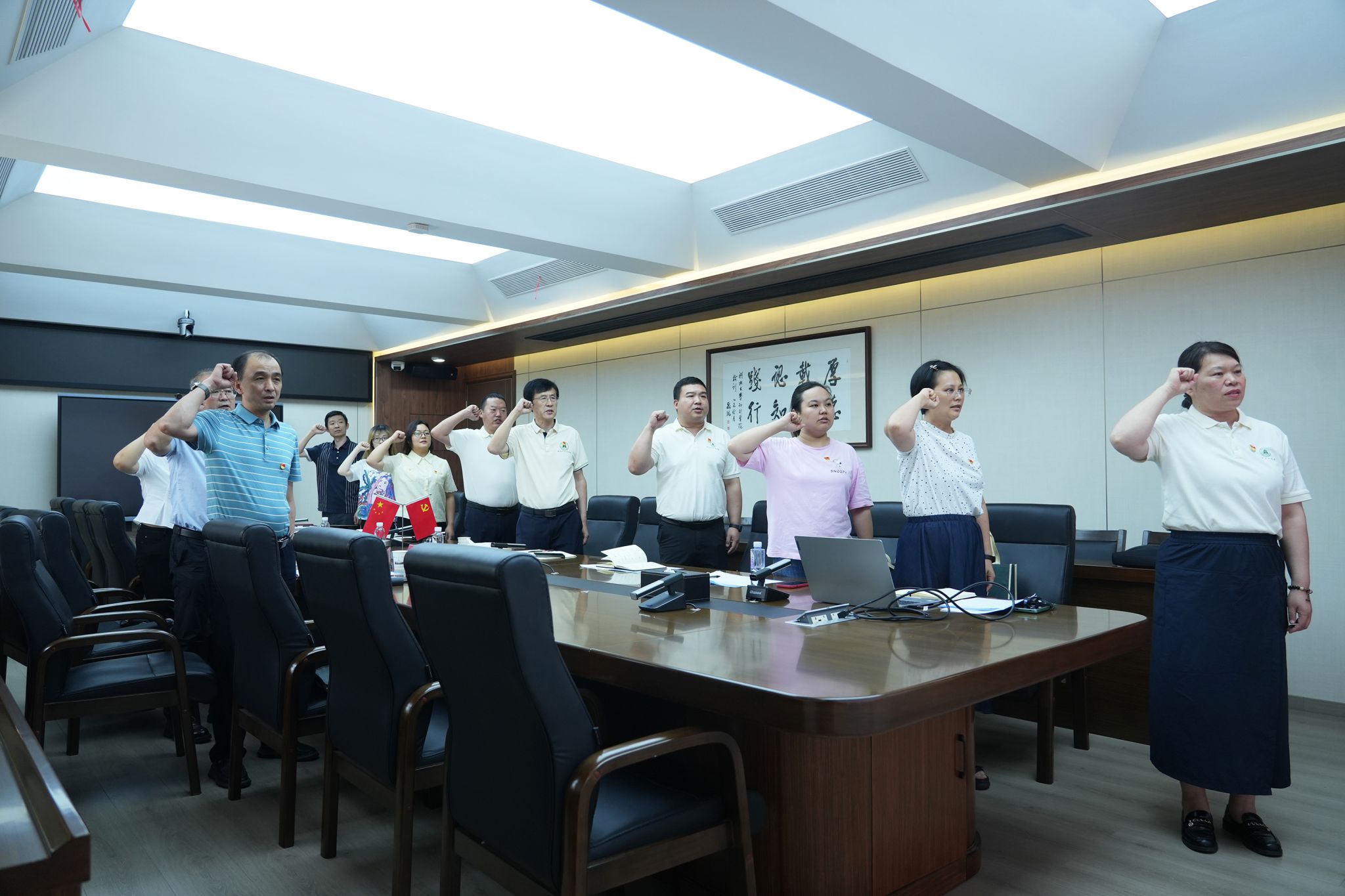 活动中,直属第二党支部全体党员集体重温入党誓词。随后,与会人员集体学习了省委书记王忠林在省委党的建设工作领导小组会议暨深入贯彻中央八项规定精神学习教育推进会上的讲话精神,学习了《党政机关厉行节约反对浪费条例》和违反中央八项规定精神的典型案例通报精神。活动中,支部党员围绕前期党员大课中专家辅导报告,结合本职工作与自身实际,交流了学习体会。